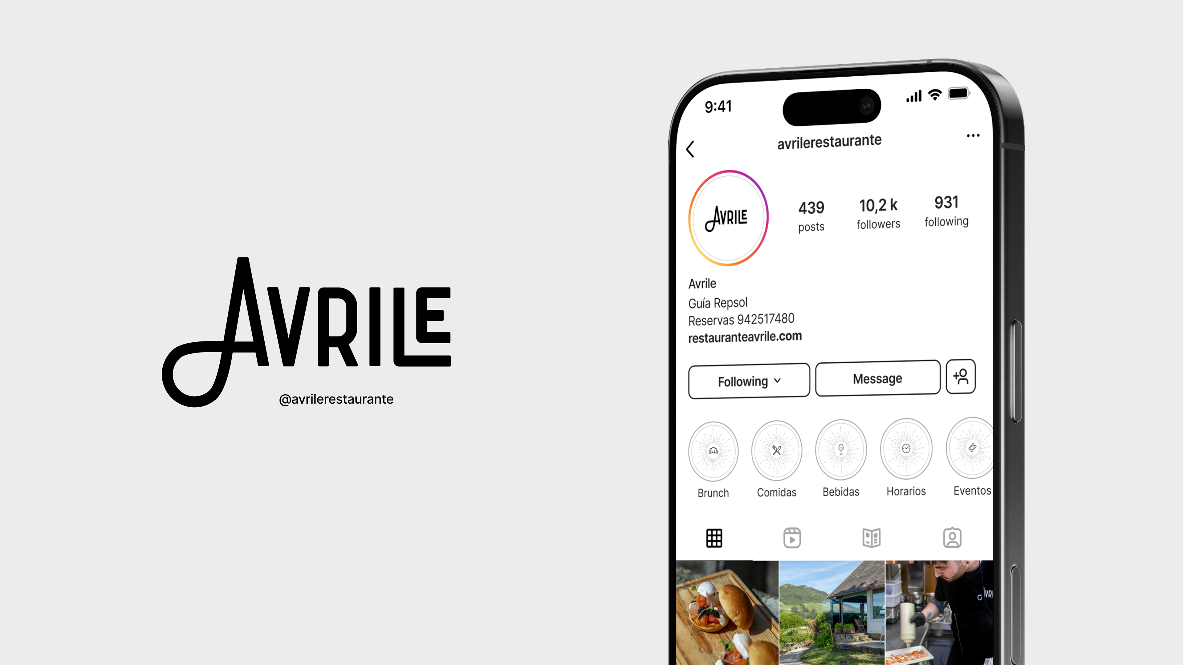 Avrile es un enclave gastronómico en Mogro (Cantabria) donde la tradición converge con la vanguardia culinaria. El proyecto de rebranding se centró en elevar la percepción de la marca hacia un territorio de lujo silencioso. La identidad visual actúa como un puente entre el entorno natural de la ría y una propuesta de alta cocina, consolidando una imagen que respira elegancia y sobriedad.