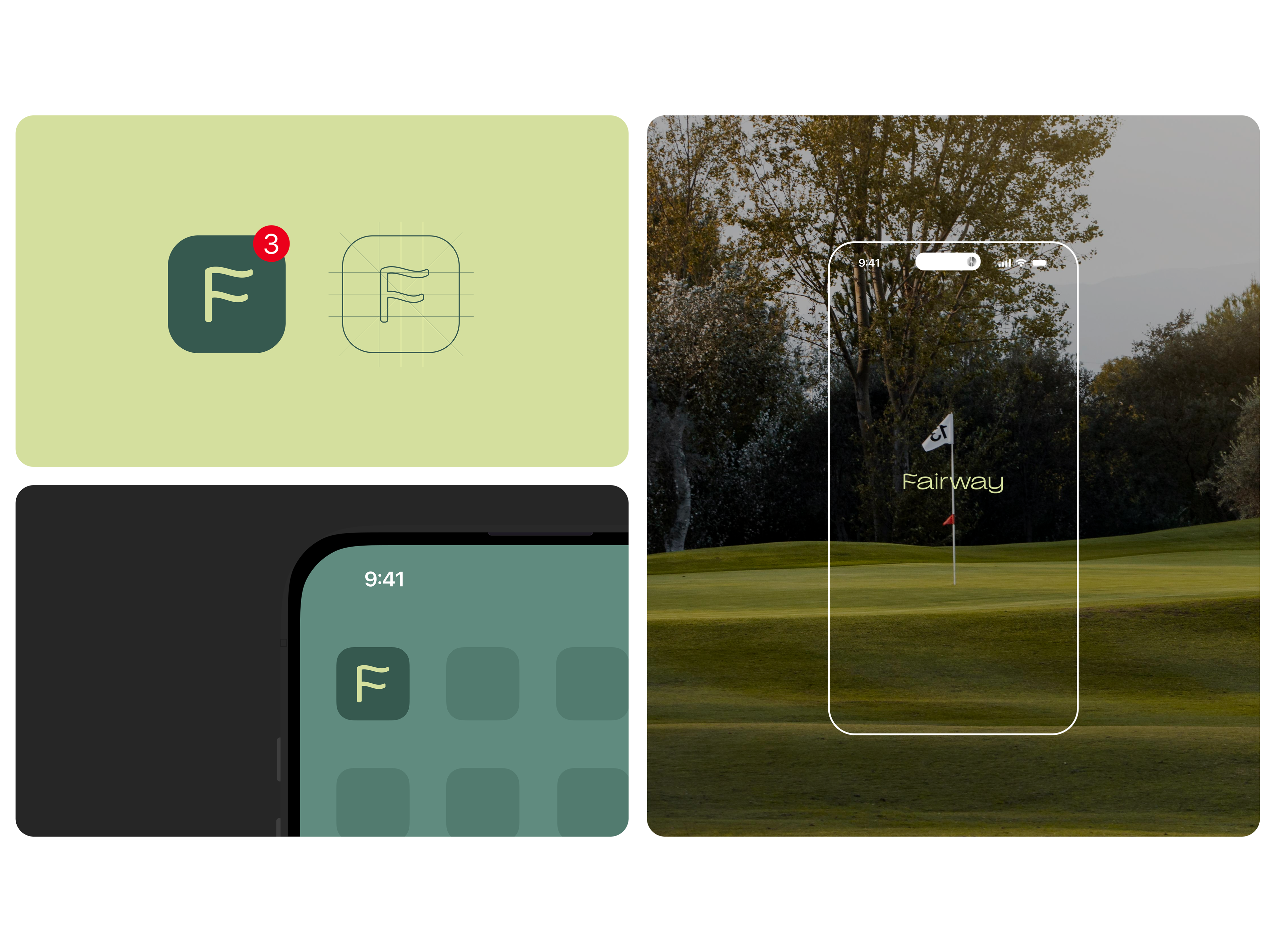 Se optó por un sistema minimalista basado en la eficiencia. El logotipo tipográfico integra un guiño conceptual en la letra "F", cuya morfología emula la bandera del hoyo, funcionando como un isologo rotundo para formatos digitales. La interfaz se diseñó bajo la premisa de "interacción mínima", optimizando el layout para el uso a una sola mano y simplificando el registro de datos. Visualmente, se utilizó una paleta técnica de verdes profundos con acentos en rojo y azul (referencia a la señalética del campo)