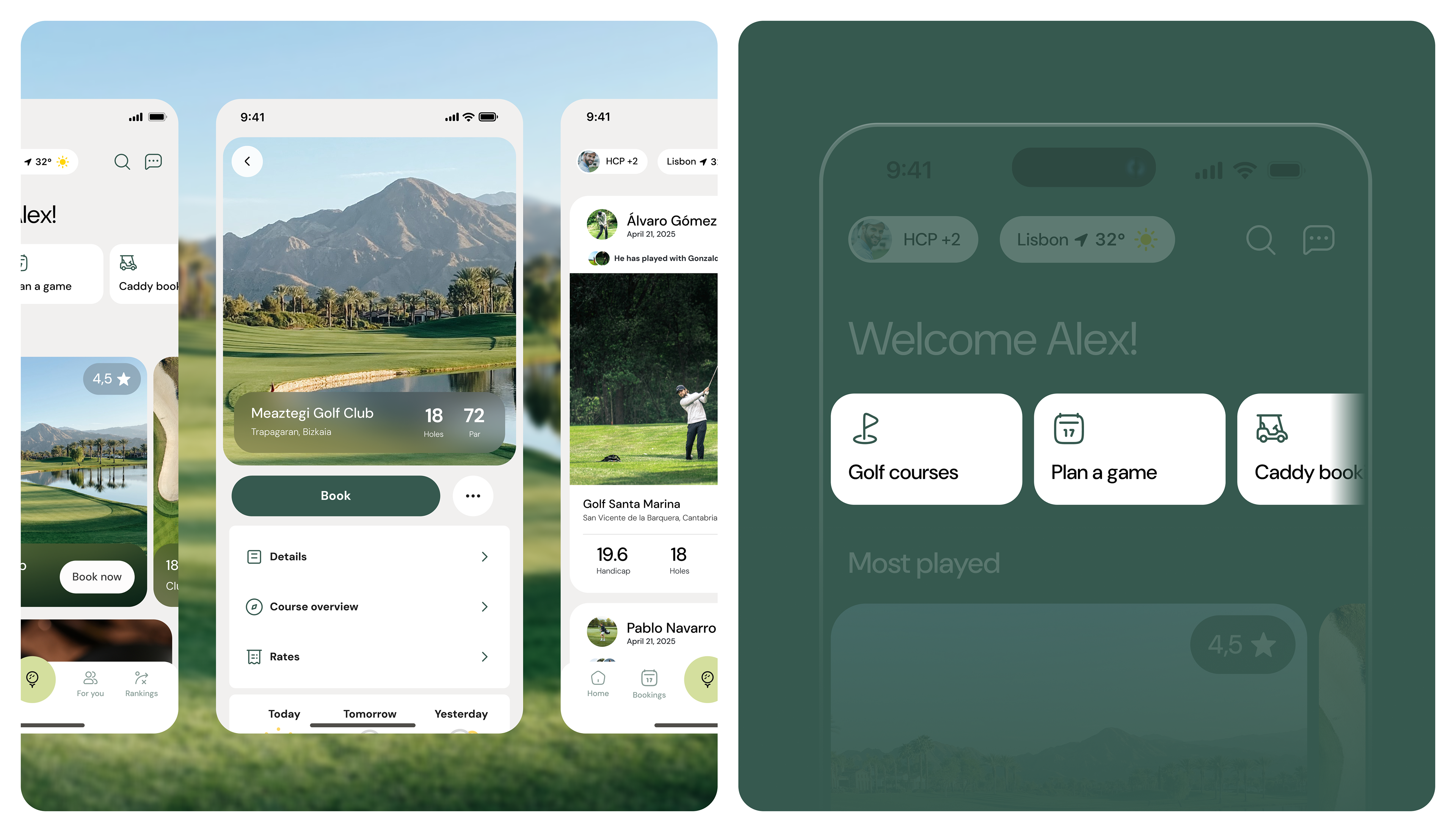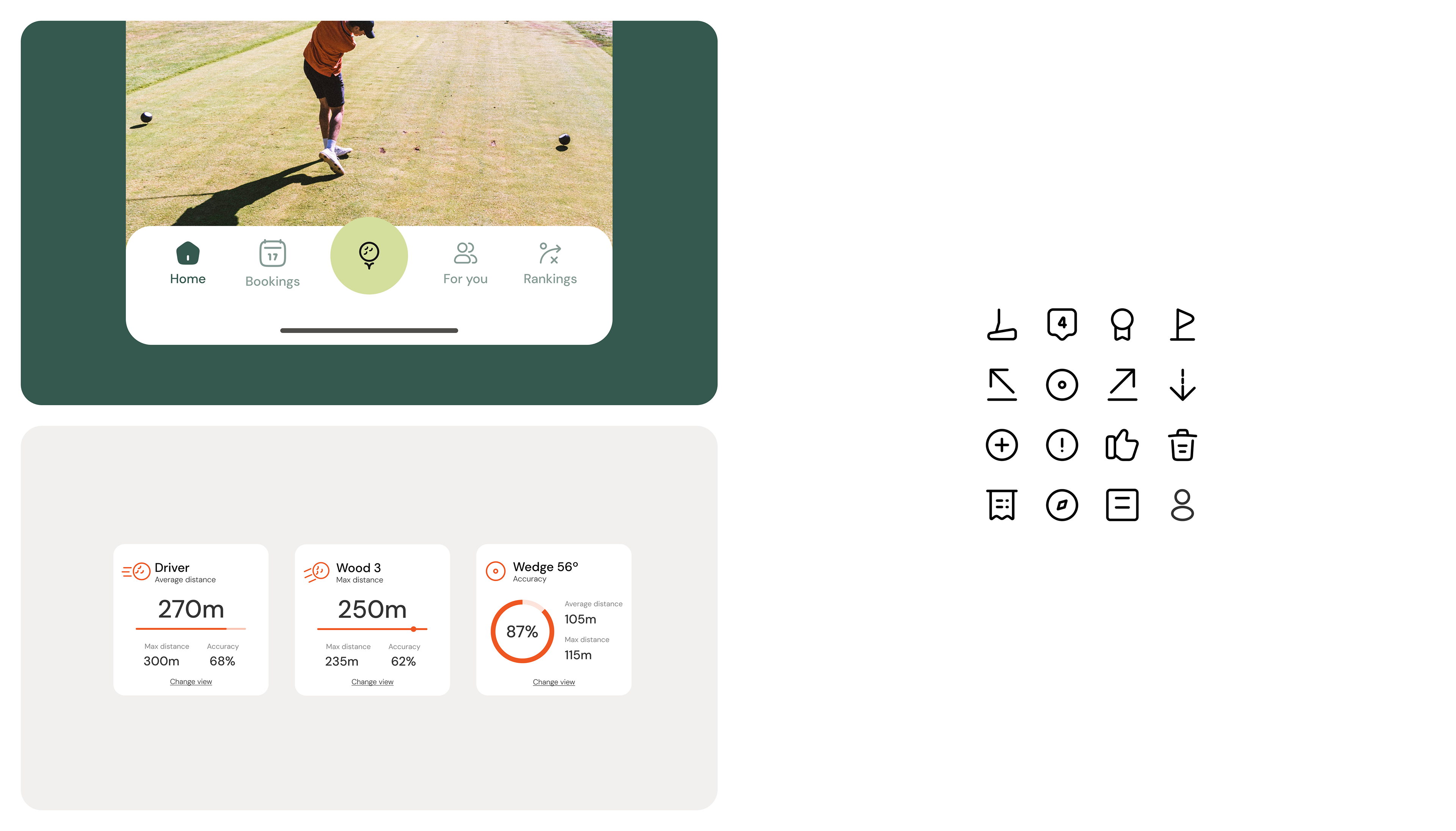 Construir una marca con personalidad propia que destaque en un mercado saturado de soluciones genéricas. El reto principal fue diseñar una experiencia de usuario que redujera la carga cognitiva: la app debía ser lo suficientemente potente para gestionar estadísticas complejas, pero lo suficientemente invisible para no interferir en el ritmo de juego del golfista.